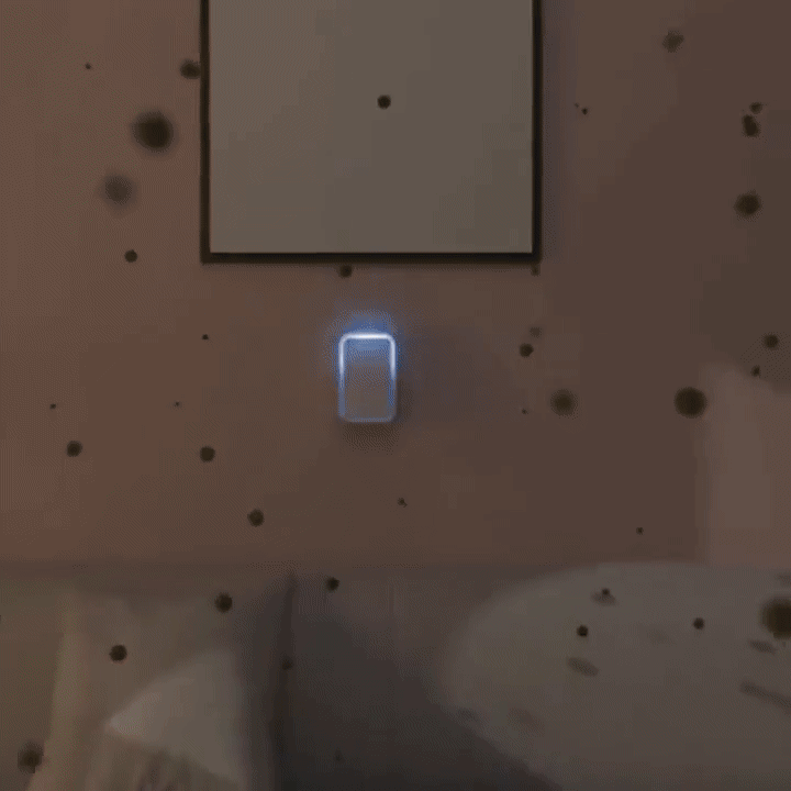 Verbraucht weniger Energie als ein Nachtlicht und nimmt keinen Platz auf dem Boden ein. Schließe es in jedem Raum an — Küche, Bad, Schlafzimmer, sogar in der Nähe des Katzenklos — und vergiss einfach, dass es da ist.