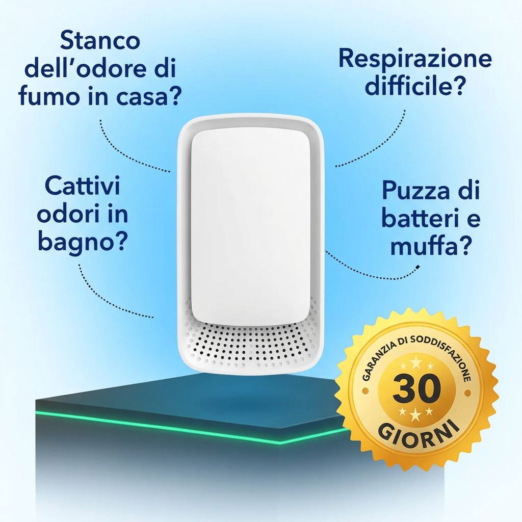 Zusammenfassung: Ein unauffälliges Gerät, das an die Steckdose angeschlossen wird und die Luft geräuschlos reinigt, ohne Filter, Sprays oder Wartung? Ja — Clairu™ ist die Zukunft sauberer und atembarer Luft. Ob hartnäckige Gerüche, Schimmel, Haustiergerüche oder Staub, Clairu™ bewältigt alles dank der ionischen Technologie, die rund um die Uhr arbeitet.