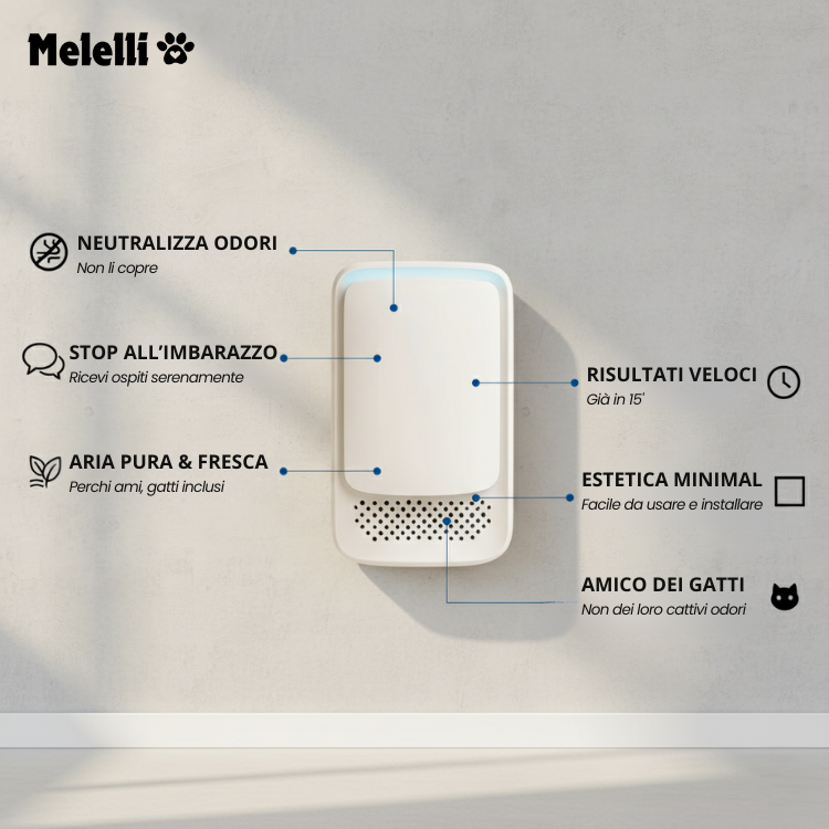 • Elimina cattivi odori da lettiera, fumo, animali e aria stagnante