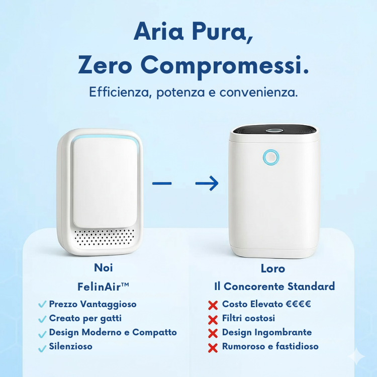FelinAir™ è pensato per migliorare la qualità dell’aria domestica. Non è un dispositivo medico e non sostituisce in alcun modo diagnosi, trattamenti o terapie.